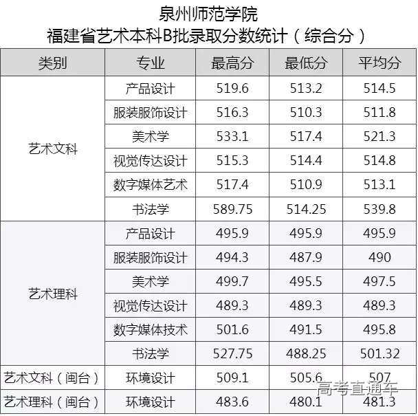 艺术设计学(闽台) | 艺术(文)美术类 | 488.6 | 473.9 | 477.8 |