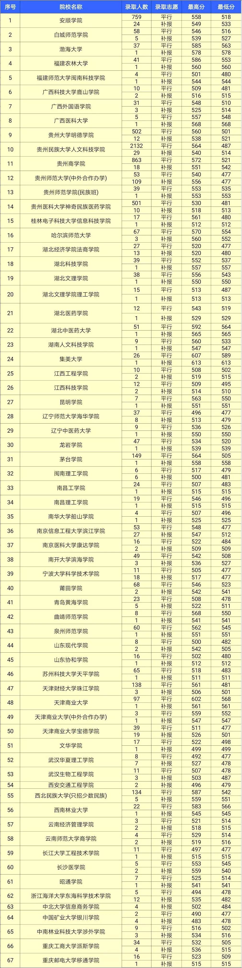 贵州省2018年高考7月30日第二批本科院校录取情况