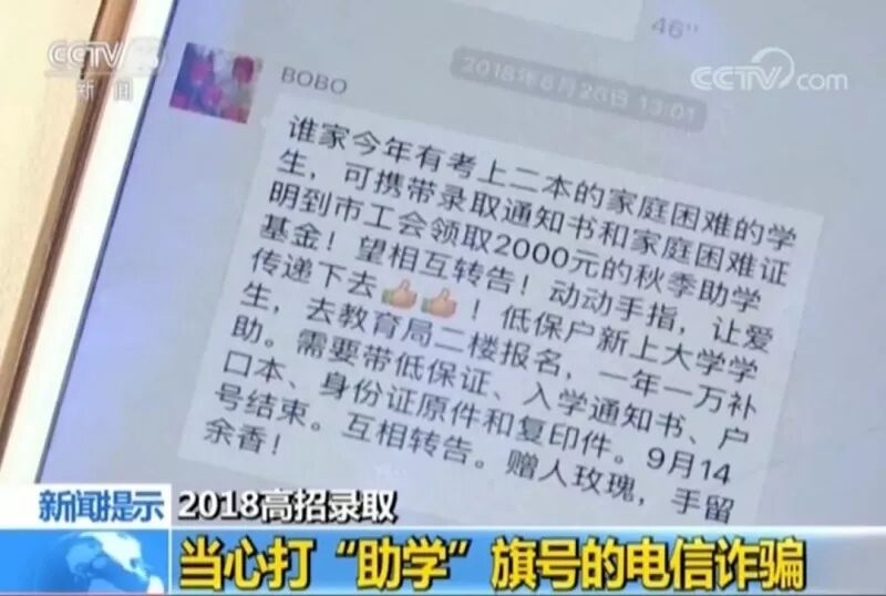近日,各大高校的录取通知书已经陆续发放。收到录取通知书之后,一些家庭经济困难的同学可能会开始为学费、路费等发愁。于是,这段时间也成了打着“资助困难学生”旗号的虚假信息、电信诈骗等各类骗局的高发期。