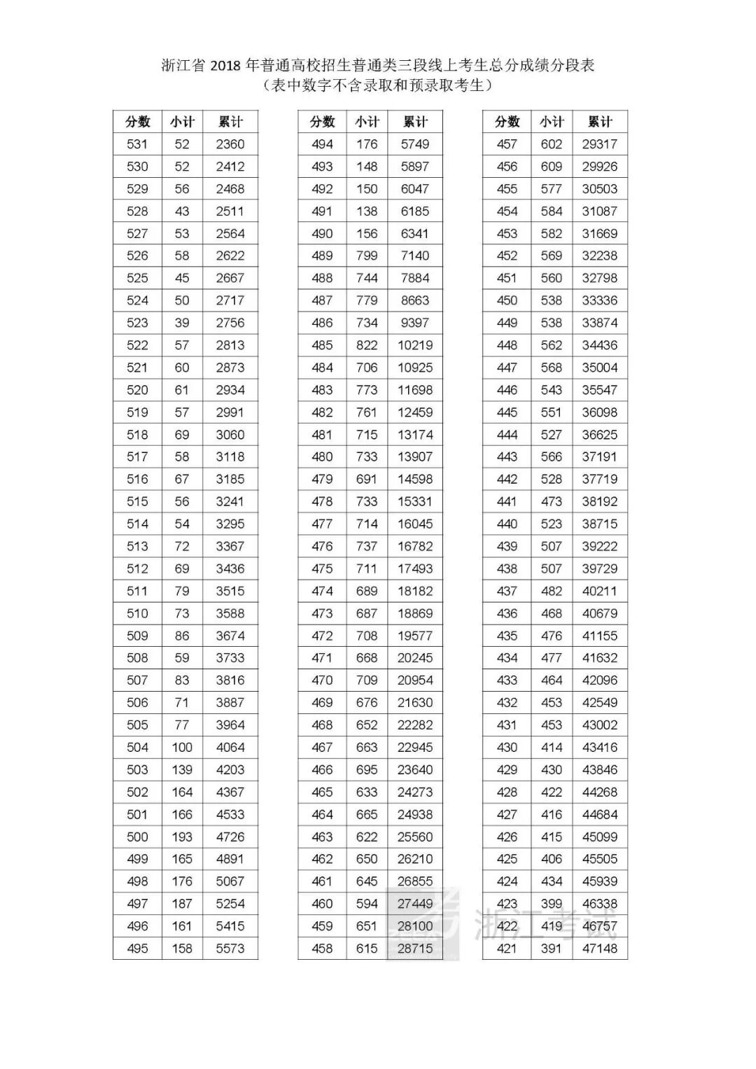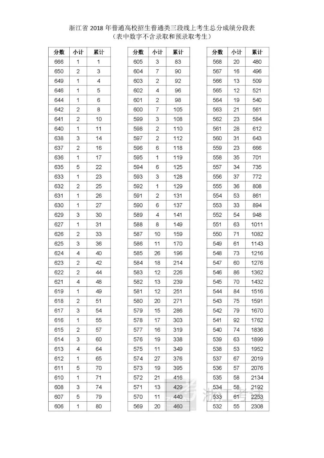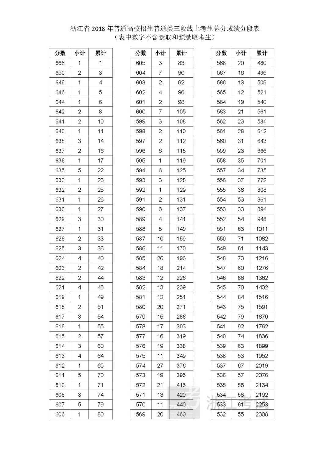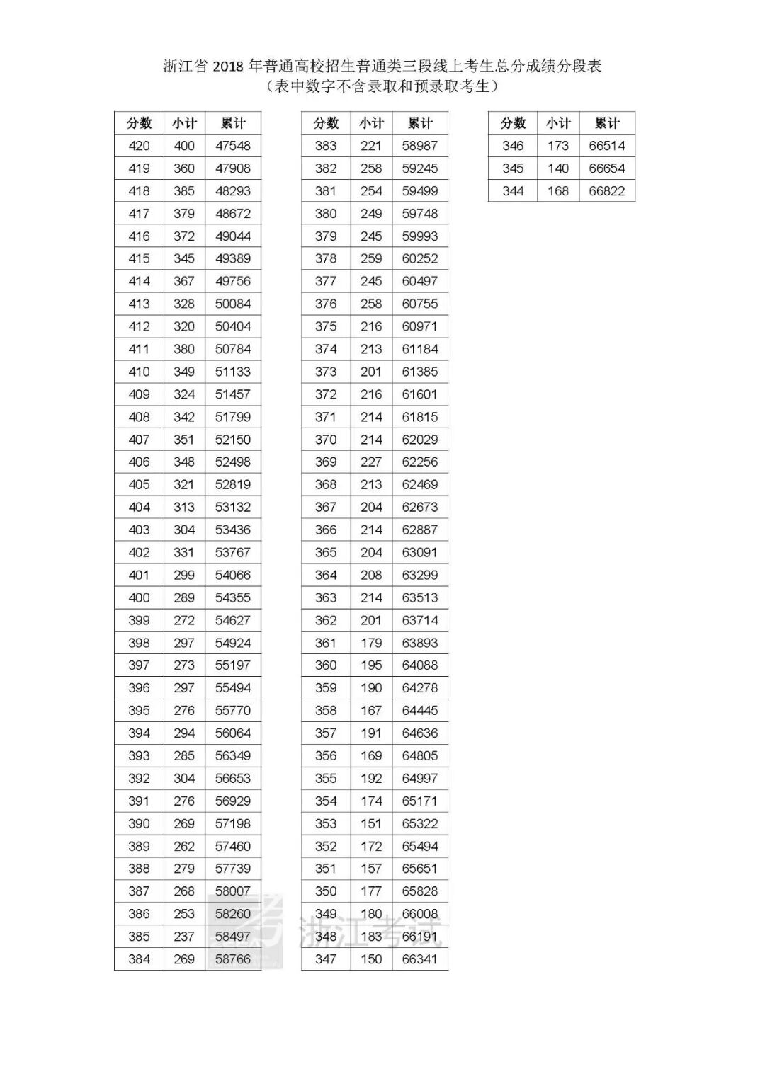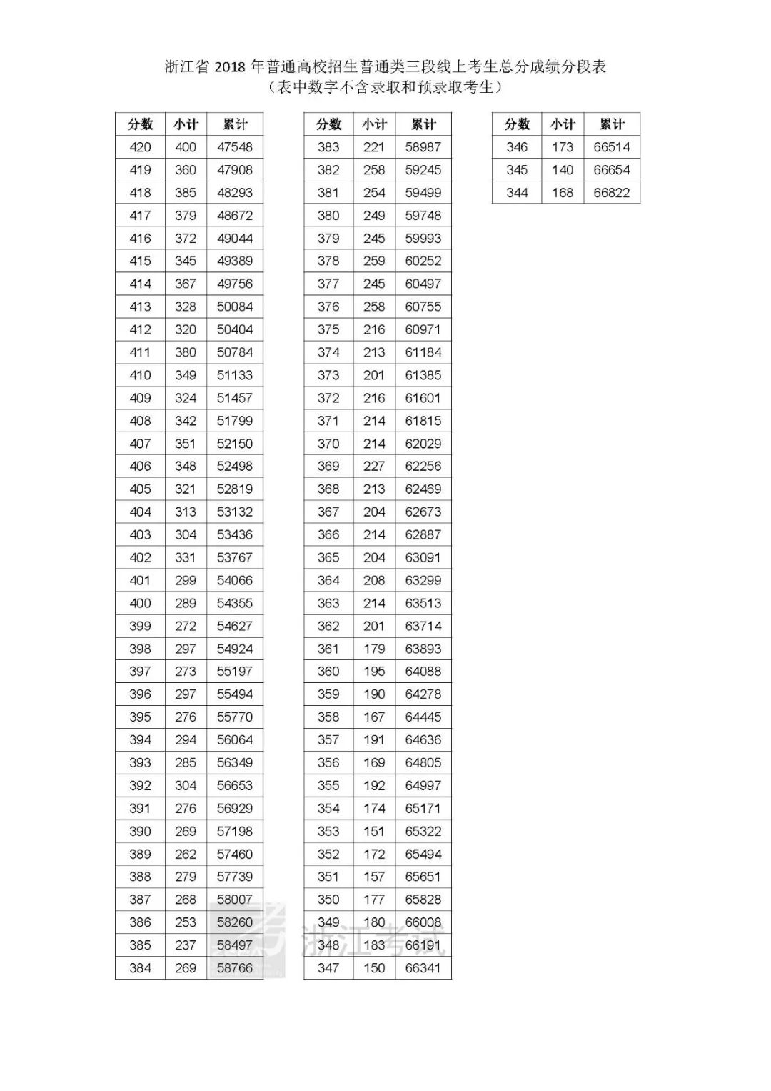 注:此前已录取或预录取的考生,不参与本表排序。艺术类第二批及体育类征求志愿考生综合分分段表可登录浙江省教育考试网(www.zjzs.net)查看。
