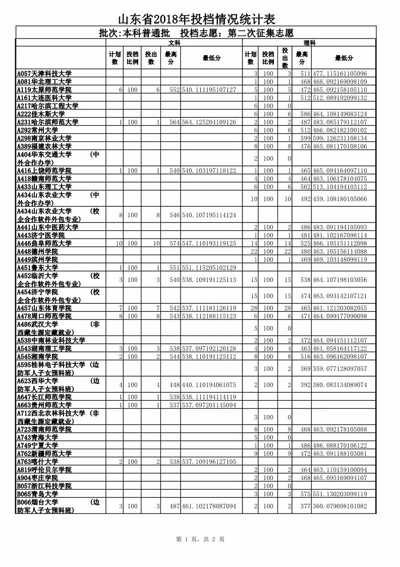 今日,省招生考试院公布2018年文理类本科普通批第二次征集志愿投档情况统计表、2018年春季高考本科第二次征集志愿投档情况统计表。