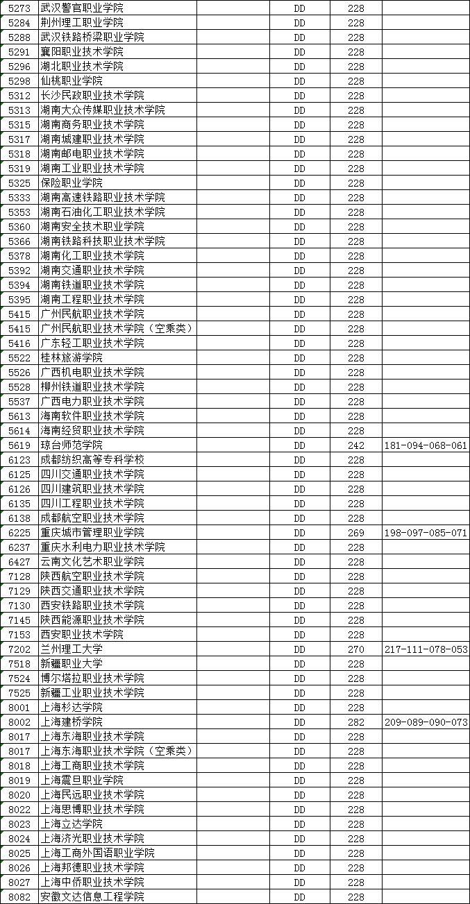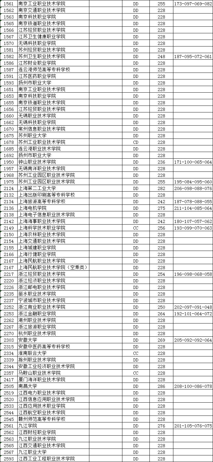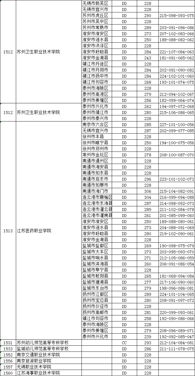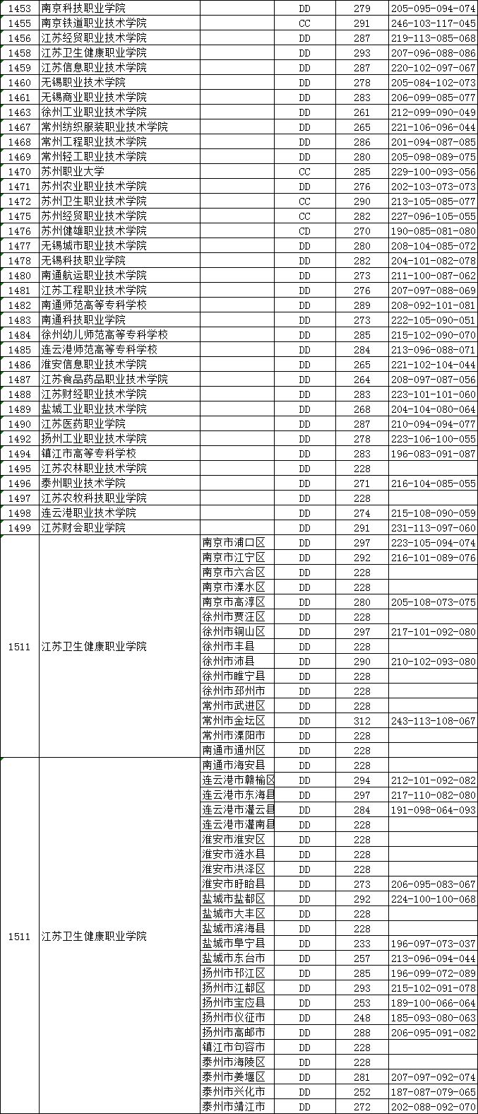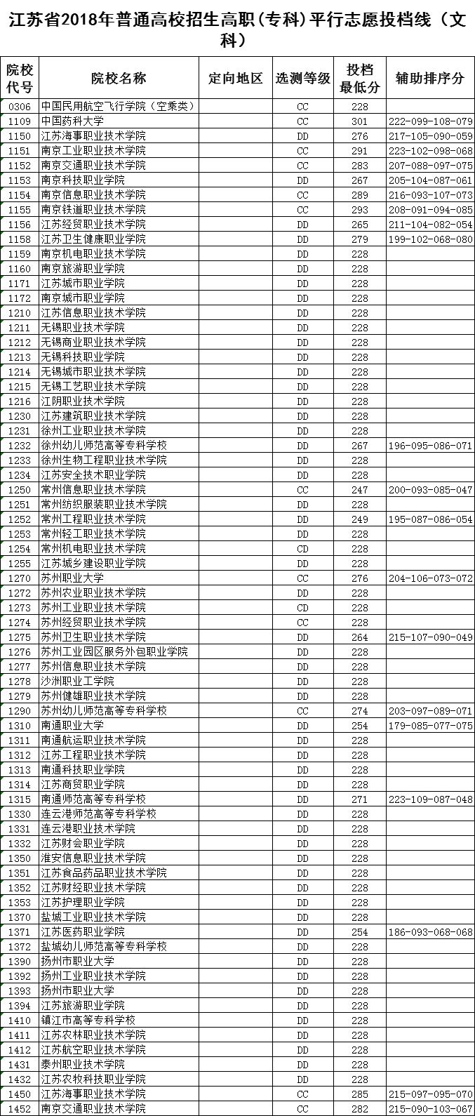 江苏省2018年普通高校招生高职(专科)平行志愿投档线(文科)