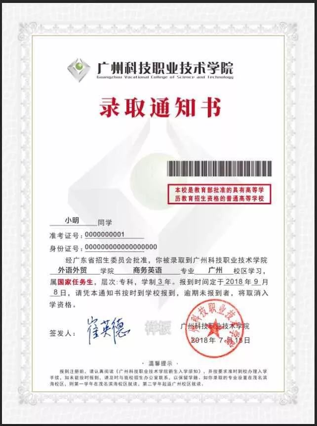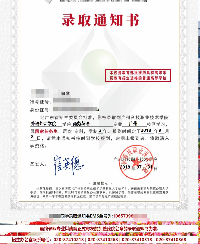 打开EMS广科专属信封,映入眼帘的首先,是我们最关心而又最急迫想要看到的录取通知书。到时候报到可是全靠这份东西哦。