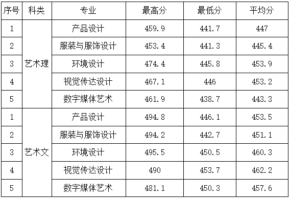 艺术(文)省控线为408.5分(综合分),产品设计(文)超出省控线37.4分,服装与服饰设计(文)超出省控线34.2分,环境设计(文)超出省控线42分,视觉传达设计(文)超出省控线45.2分,数字媒体艺术(文)超出省控线41.8分。