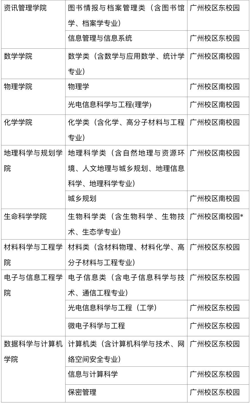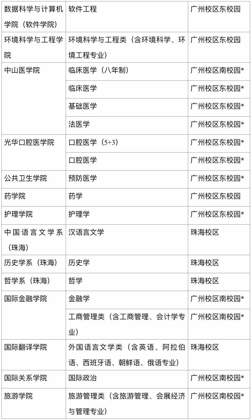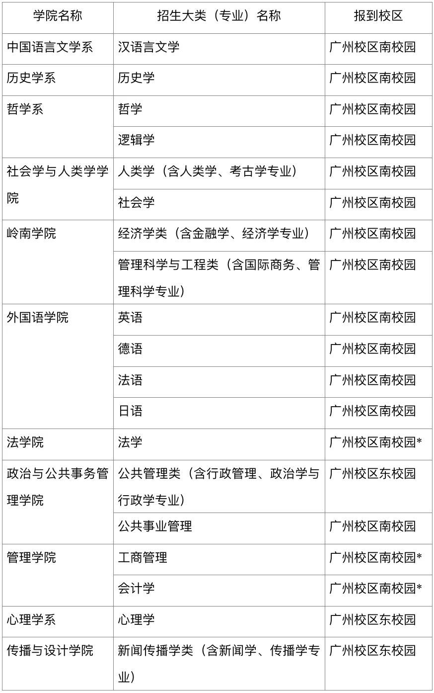 注:报到校区一栏*表示本专业学生将根据教学安排,后一阶段迁至另一校区(校园)就读,具体迁移情况以学校当年公布为准。