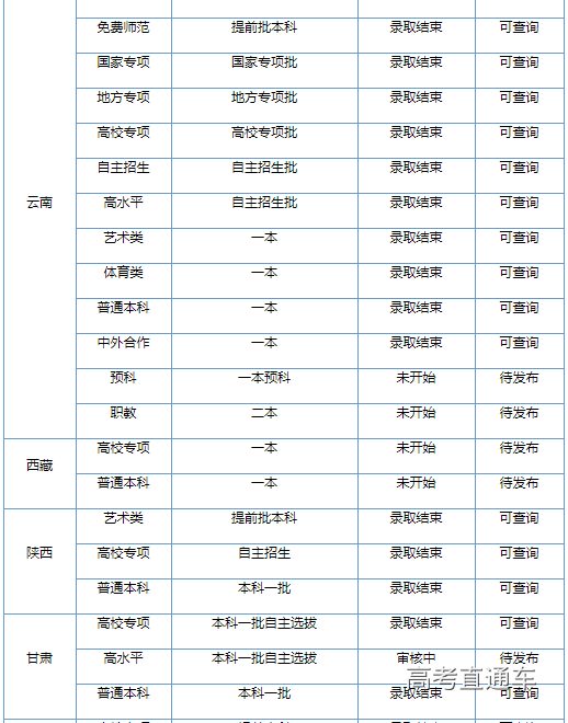 云南大学(分数线,专业设置)2018年招生录取各省录取状态