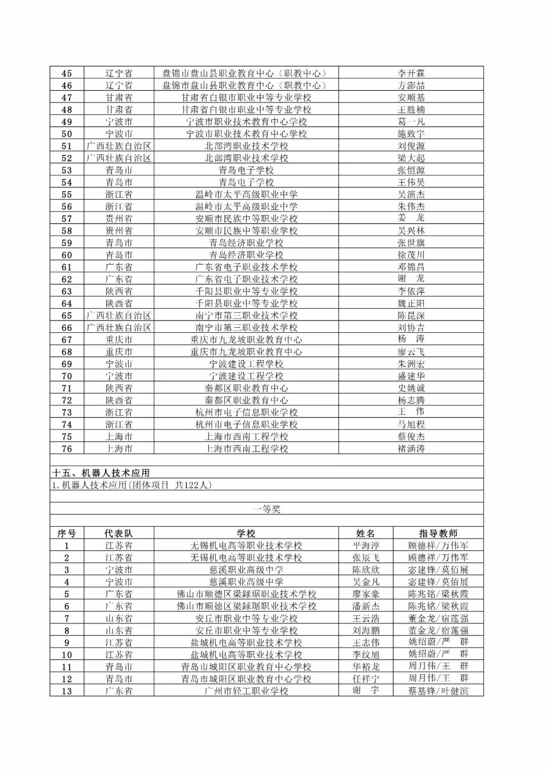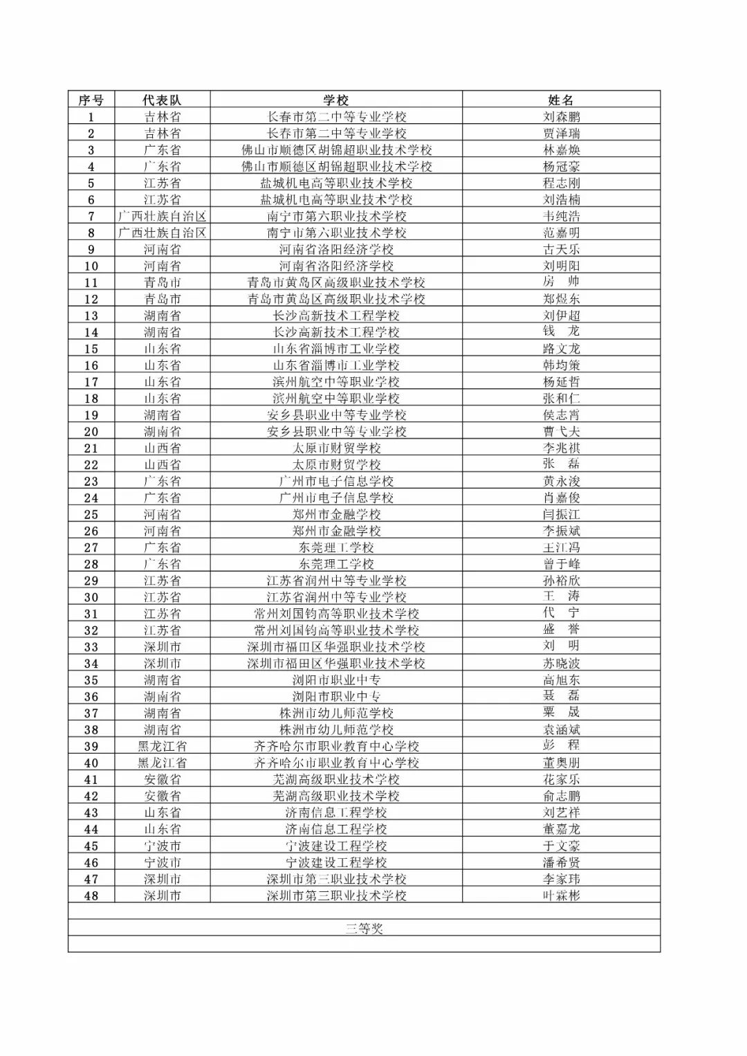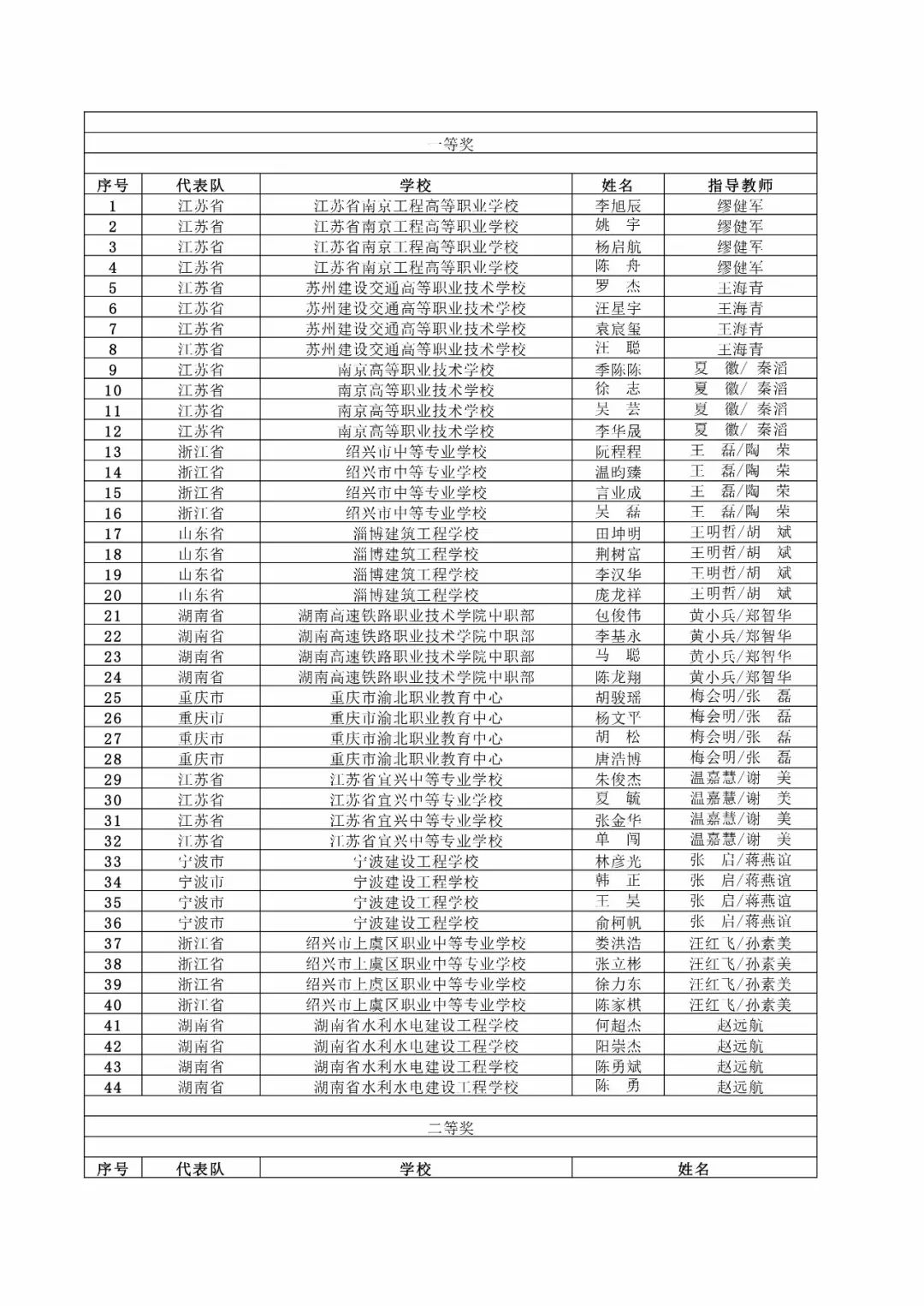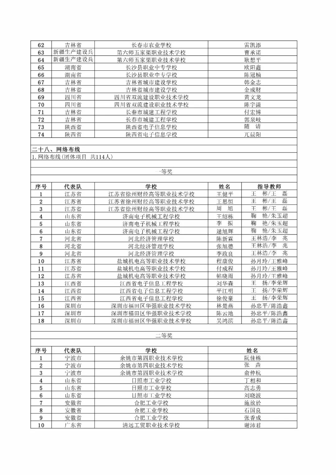 2018年全国职业院校技能大赛常规赛项于5月6日至6月30日在天津主赛区和北京、山西、内蒙古、辽宁、吉林、江苏、浙江、安徽、福建、山东、河南、湖北、湖南、广东、重庆、四川、云南、陕西、甘肃、宁夏、青岛、宁波等22个分赛区成功举行。共有来自全国37个地区的14907名选手参加了中、高职组74个项目的比赛。根据选手的竞赛成绩,经分赛项执委会审定、大赛组委会同意,现公示一、二、三等奖获奖选手、优秀指导教师及所在学校名单(见附件)。