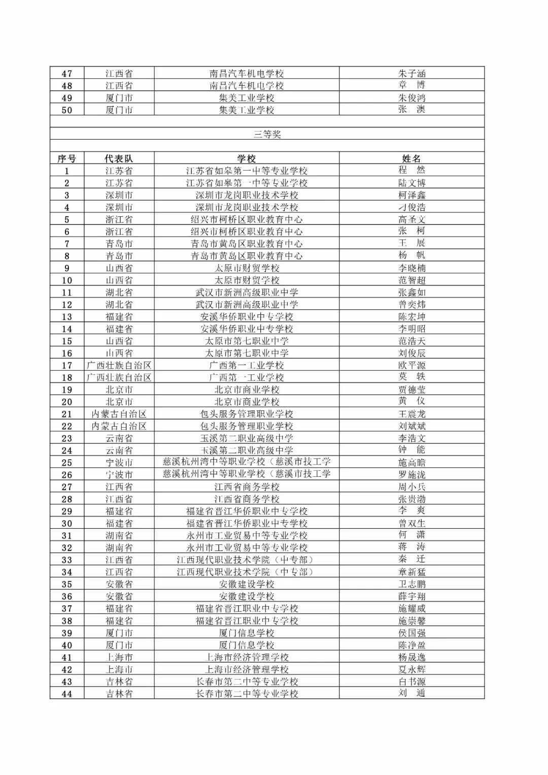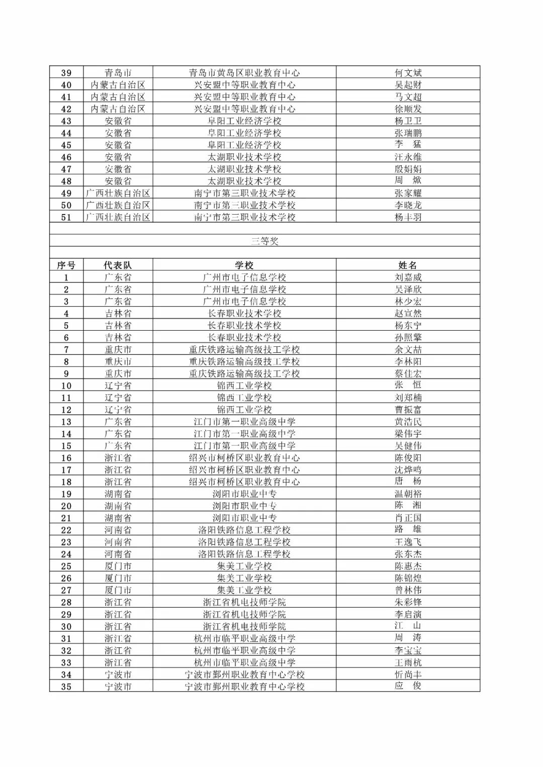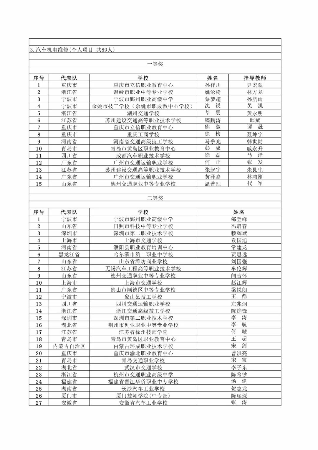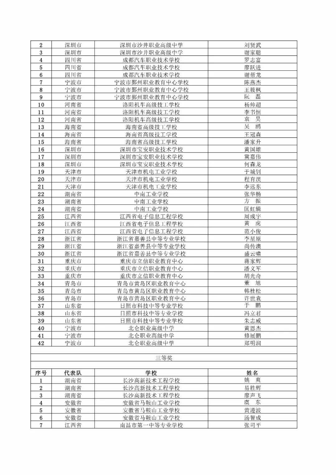 2018年全国职业院校技能大赛常规赛项于5月6日至6月30日在天津主赛区和北京、山西、内蒙古、辽宁、吉林、江苏、浙江、安徽、福建、山东、河南、湖北、湖南、广东、重庆、四川、云南、陕西、甘肃、宁夏、青岛、宁波等22个分赛区成功举行。共有来自全国37个地区的14907名选手参加了中、高职组74个项目的比赛。根据选手的竞赛成绩,经分赛项执委会审定、大赛组委会同意,现公示一、二、三等奖获奖选手、优秀指导教师及所在学校名单(见附件)。