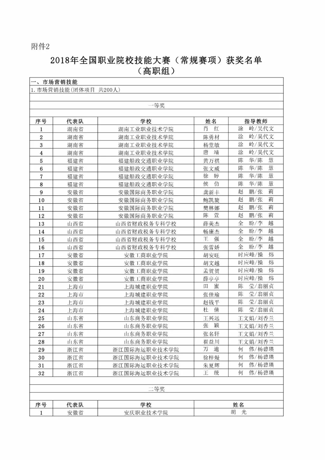 2.2018年全国职业院校技能大赛(常规赛项)获奖名单(高职组)