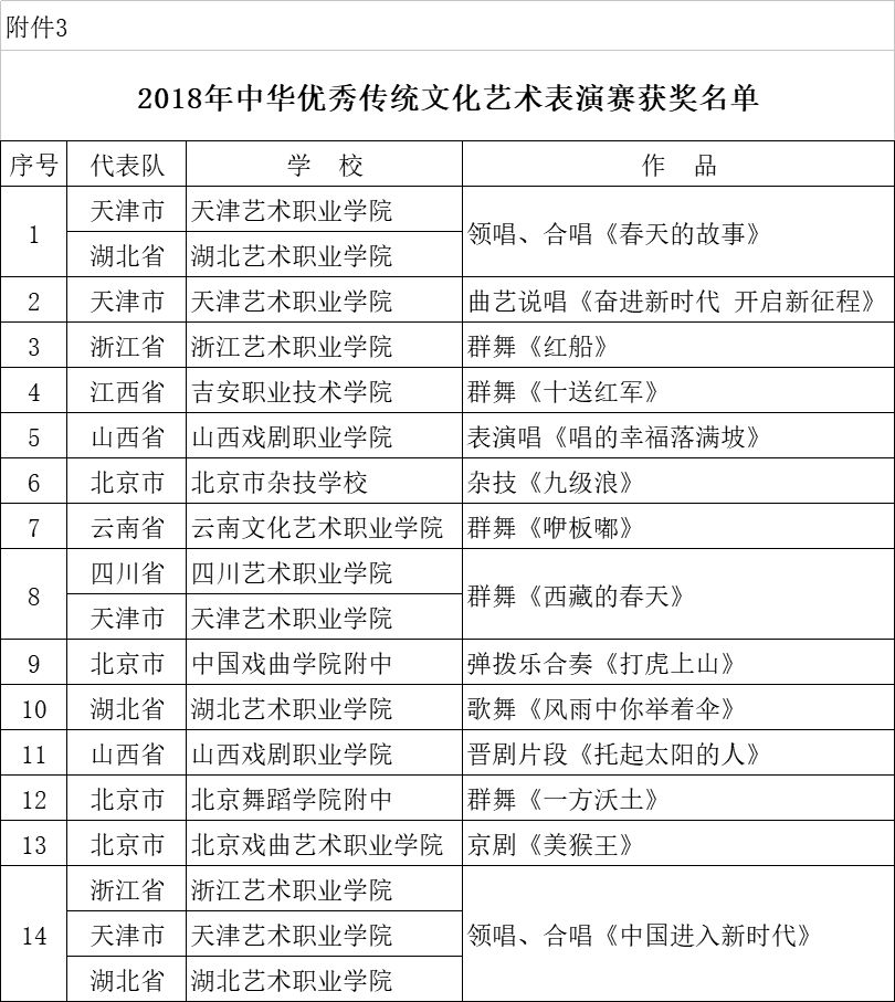 2018年中华优秀传统文化艺术表演赛获奖名单