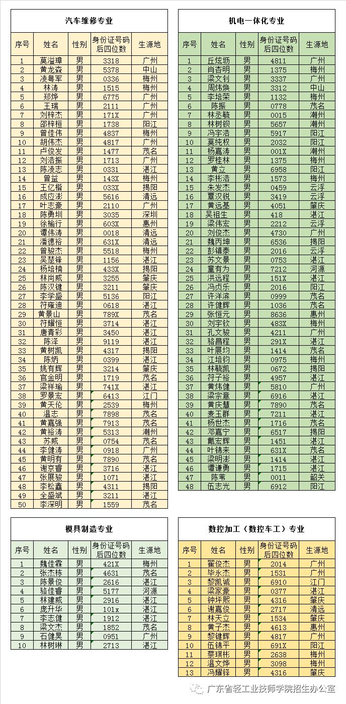 广东省轻工业技师学院2018级新生“三二分段”试点班拟录取名单公示