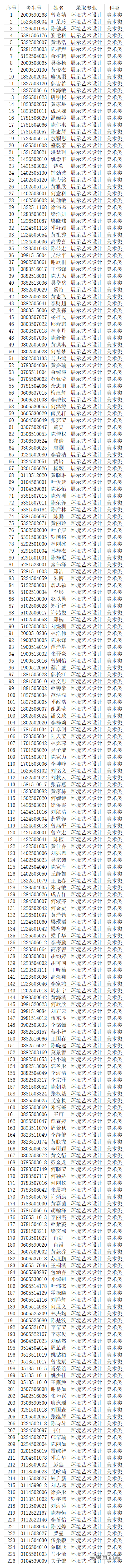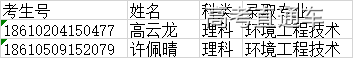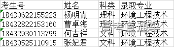 | 考生号 | 姓名 | 科类 | 录取专业 |