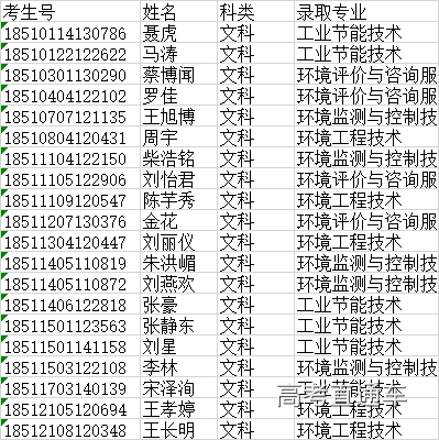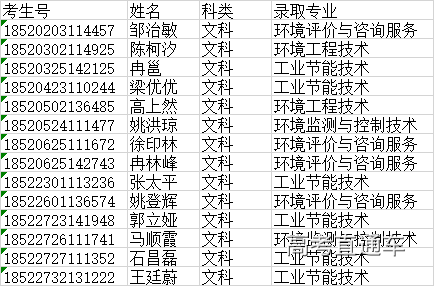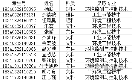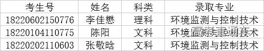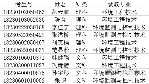 | 18211122110098 | 李禹良 | 文科 | 环境监测与控制技术 |
