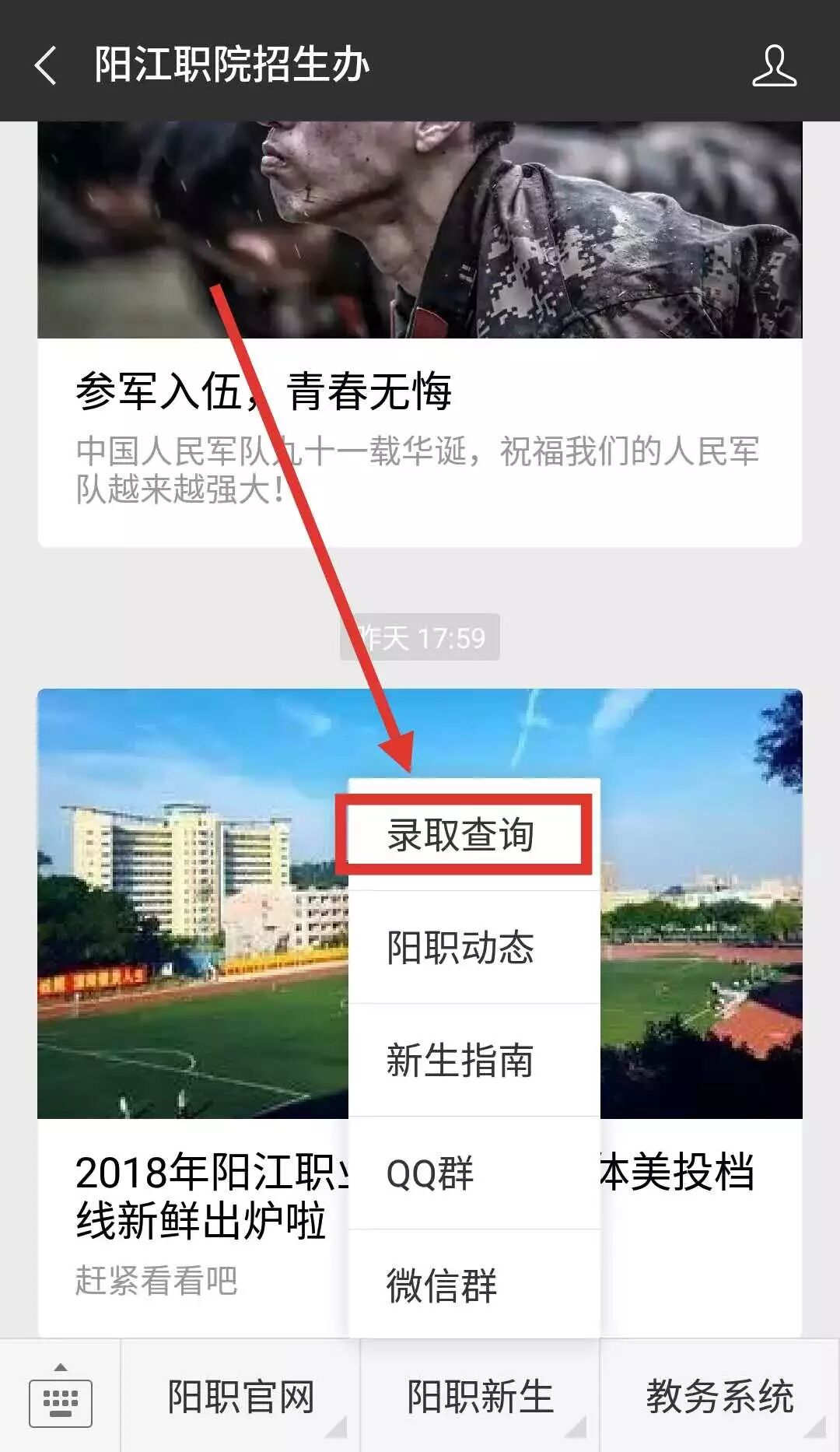 关注“阳江职院招生办”公众号