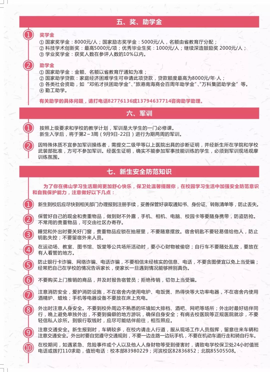 您好!经过多年的刻苦学习,你在今年高考中取得了优异的成绩,被我校录取。在此,我们向你表示热烈祝贺!并向精心哺育、教诲你的父母、老师表示由衷的感谢!为便于你做好来校的准备工作,顺利办理入学报到手续,录取通知书寄出之后,学校将通过招生办微信公众号(fosuzsb)和网站发布信息,请广大新生密切关注微信和网站发布的通知公告,分班信息及学号信息也请到招生办微信公众号查询,并于 8 月 10 日前登录“学工系统”(http://ehall.fosu.edu.cn/new/index.html)完善个人信息。现将有关事项说明如下。