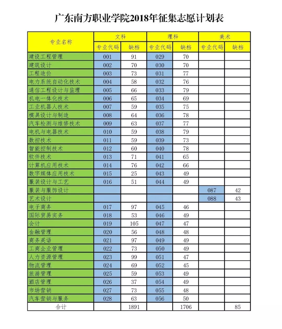 录取工作日程 目前,我院尚缺额文科1891人、理科1706人、美术类85人。根据广东省教育考试院的录取工作日程,预计在8月6号-7号开始专科普通类(文科、理科、美术类)的征集志愿(补录),估计会有一定层度的降分,我院招生计划充足、录取机会大、办学综合实力强、专业覆盖面广、就业前景好,广东南方职业学院是你明智的选择! 欢迎广大考生A志愿填报我院! 备注:以广东省教育考试院通知公告为准!