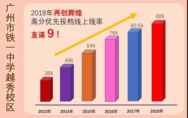 我们家长委员会经过多方了解得知:广铁一中2018年高考再创新高!在全体高三师生的奋力拼搏与不懈努力下,广铁一中2018年高考成绩再创新辉煌,全校参加考试人数616人,542人达到高分优先投档线,高分优先投档线上线率高达88%,本科率达100%。广铁一中程禧茗同学已被北京大学信息管理系预录取。广铁一中2018高分优先投档线上线率在广州市、广东省位居前列!去年广铁一中高考重本率创新高,突破80大关!今年高分优先投档线上线率高达88%。这是铁一高考史上的又一座新的里程碑!我们热烈祝贺广铁一中!我们敬佩拥有广博胸怀、不断进取精神的铁一人。正所谓:广博胸怀,铁杵磨针 ,去岁重本八零书壮志;一同拼搏, 中正竞争, 今年高保八八建奇功 !在这里,请让我们代表全体家长对你们的敬业和奉献精神表示最诚挚的敬意和衷心的感谢!