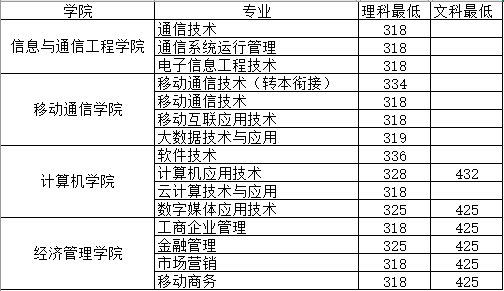 附普高各专业录取最低分数线