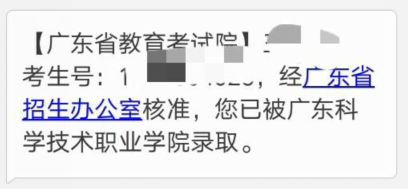 (图片仅供参考,以收到广东省教育考试院实时短信为准)