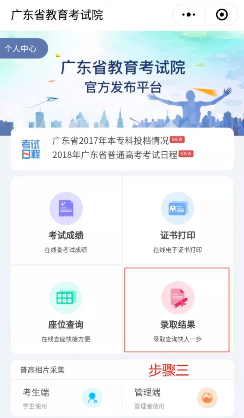 广东省教育考试院将通过号码106906708或106905708向已录取考生在高考志愿填报系统绑定的手机号码推送录取结果。