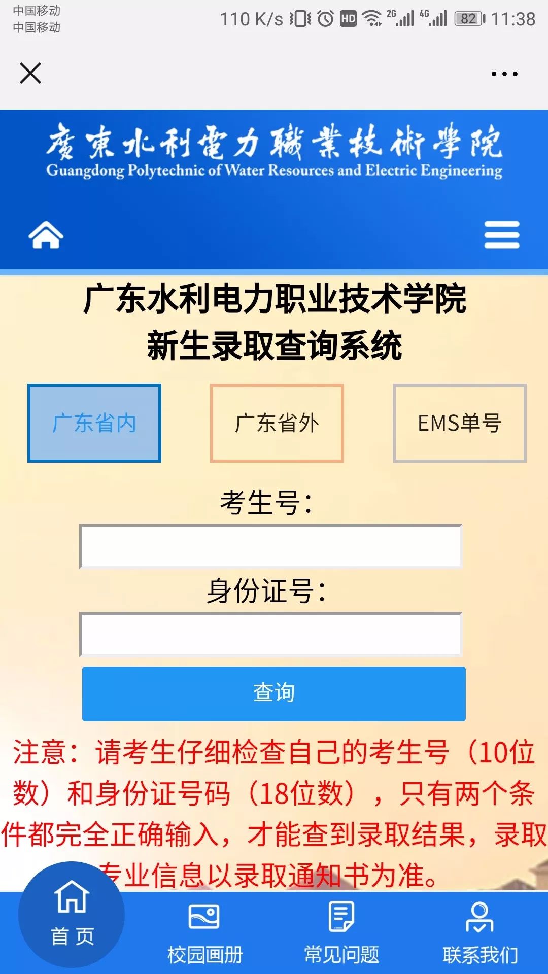 2、学院官网-招生信息网查询 http://zs.gdsdxy.cn/