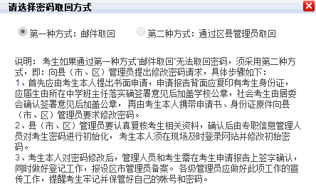 A:可以持有效证件(准考证、二代身份证)去报名县(市、区)教育局重新设置密码,也可以在高考报名的页面点击修改密码。