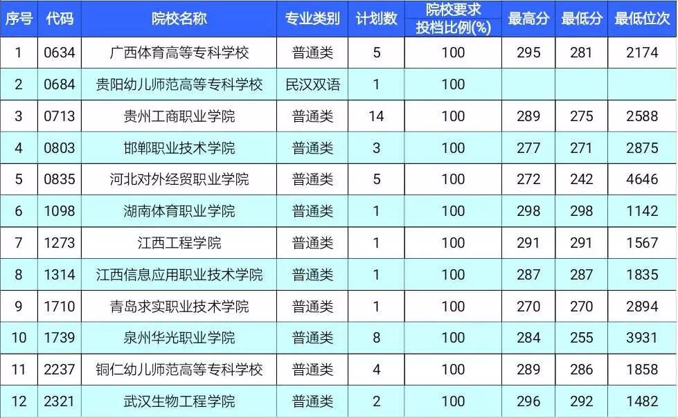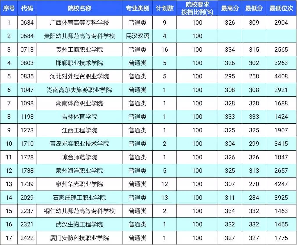 贵州省2018年高考体育高职专科征集志愿投档情况