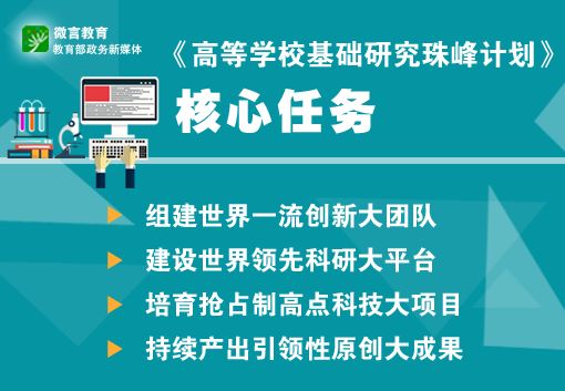 近日,教育部印发《高等学校基础研究珠峰计划》。《计划》指出,到本世纪中叶,在高等学校建成一批引领世界学术发展的创新高地,在一批重要领域形成引领未来发展的新方向和新学科,培养出一批国际顶尖水平的科学大师,为建成科技强国和教育强国提供强大支撑。