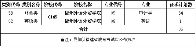 我校征求专业计划及专业代码如下(具体征求志愿专业计划以福建省考试院公布为准)
