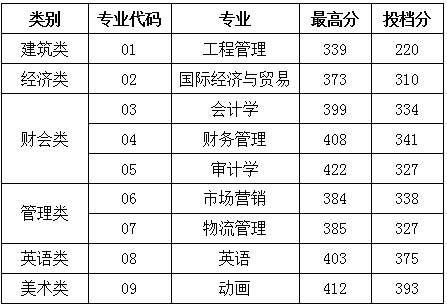 附:福州外语外贸学院2018年专升本常规批投档分数