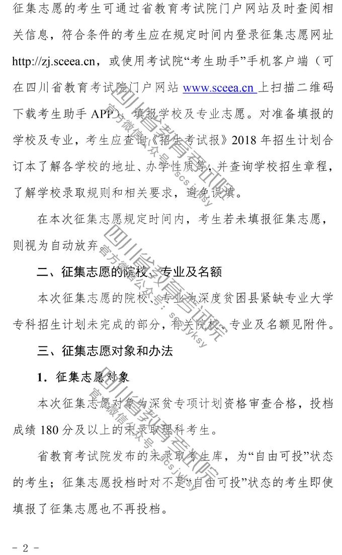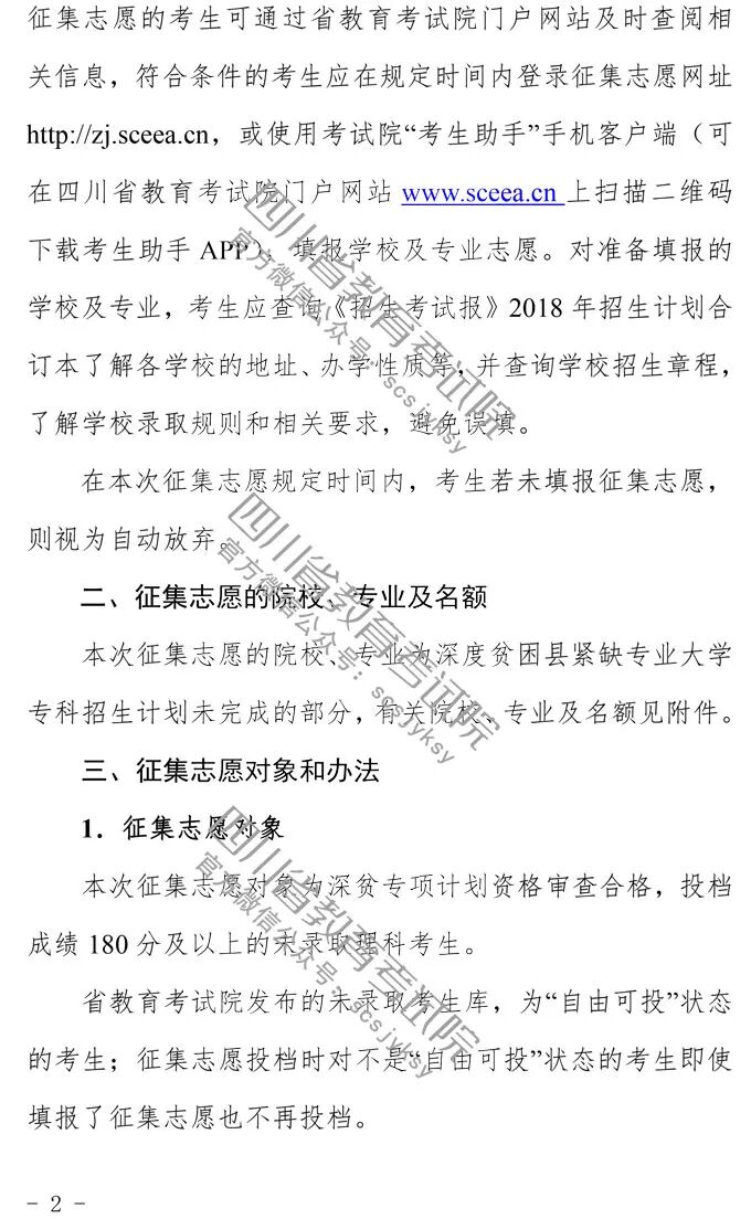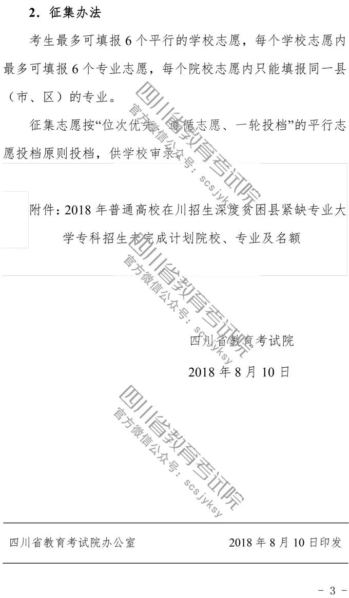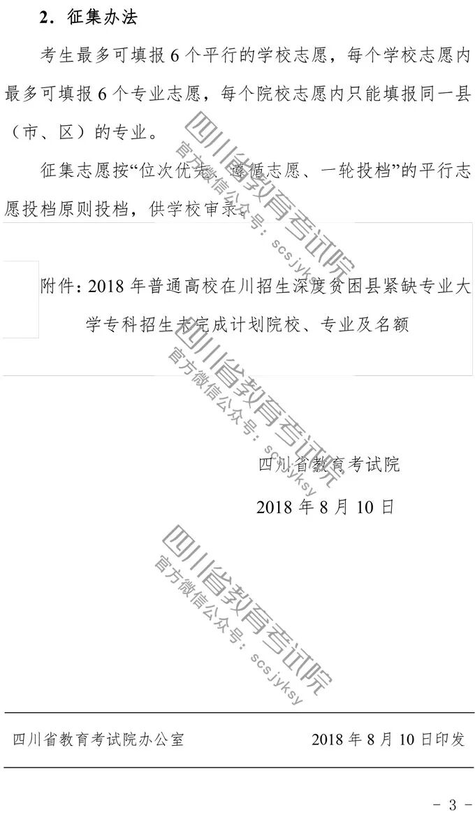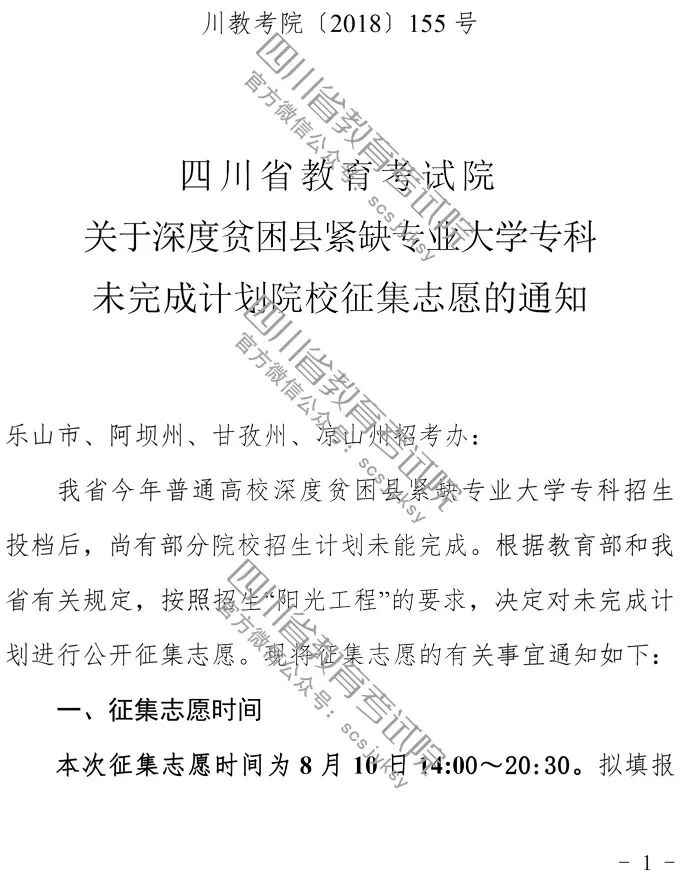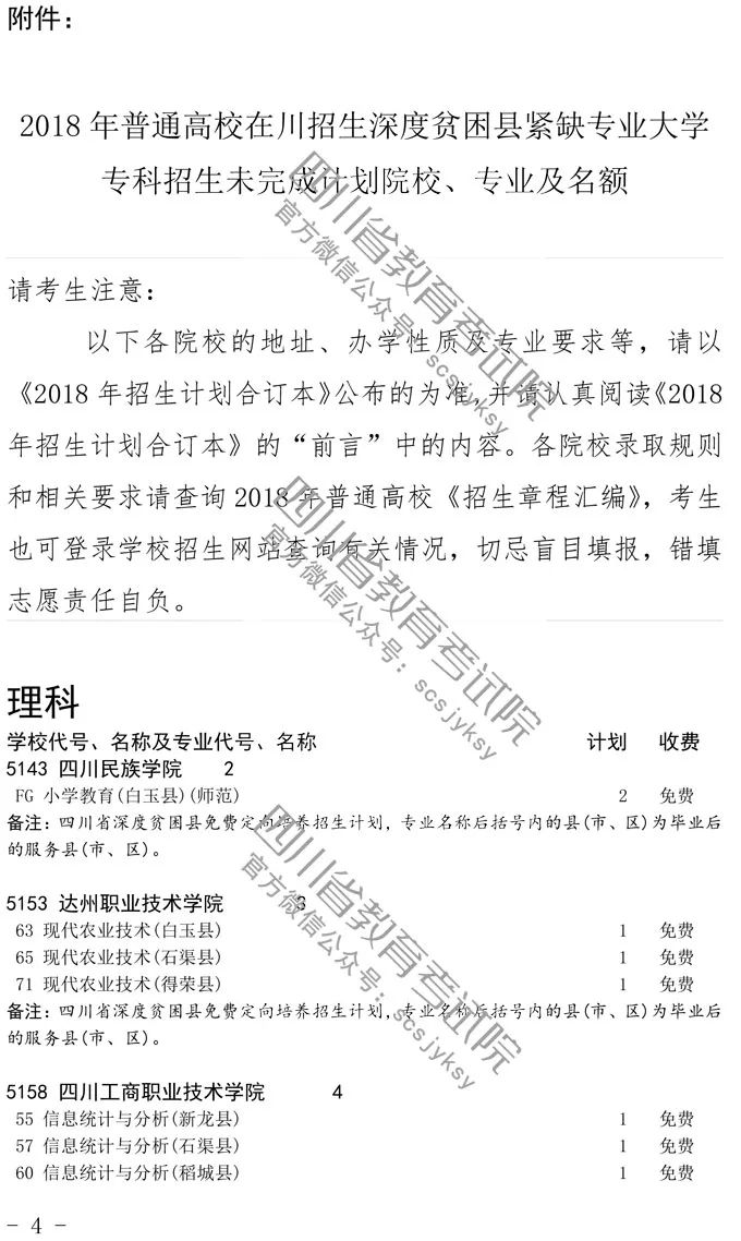 四川2018关于深度贫困县紧缺专业大学专科未完成计划院校征集志愿的通知