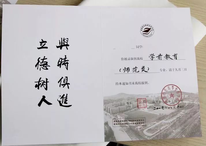 淄博师专党委书记赵新法提出作为山东省培养、培训专科层次小学及幼儿教师为主的高等师范专科学校,要从录取通知书开始向学生传递一份文化情怀、一份学校温暖,让文化薪火相传从录取通知书开始。 在自愿报名和选拔的基础上学校组成了一支书写团队,其中有中国书法协会会员、学校党委书记赵新法,中国书法协会会员、学校书法副教授刘慧龙以及多名在书法领域取得优异成绩的在职教师和优秀毕业生。 在淄博师专65年的办学历程中,教师传统基本功“三字一话两表达”(三字指的是钢笔字、粉笔字、毛笔字,一话指的是普通话,两表达指的是口头表达和书面表达)的训练是常抓不懈。毛笔字的书写作为其中一项重要教师基本功,同时作为中华民族优秀的传统文化,其继承和发扬的必要性,以及普及书法教育唤起全体国民的民族自豪感和继承优秀民族文化的责任感是学校多年来教学与管理的重点。