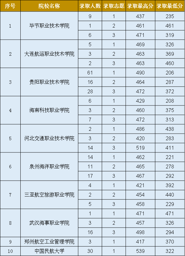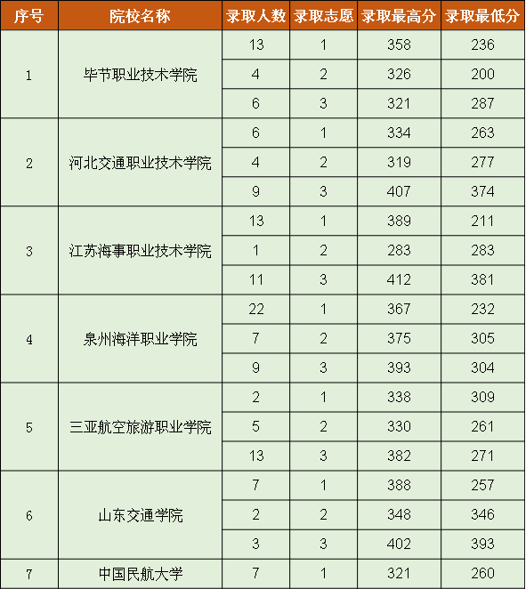提前高职专科院校录取情况(文史)