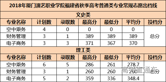 2018年厦门演艺职业学院福建省秋季高考常规志愿出档线