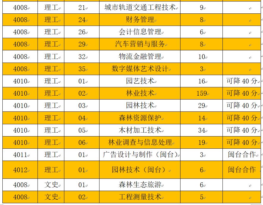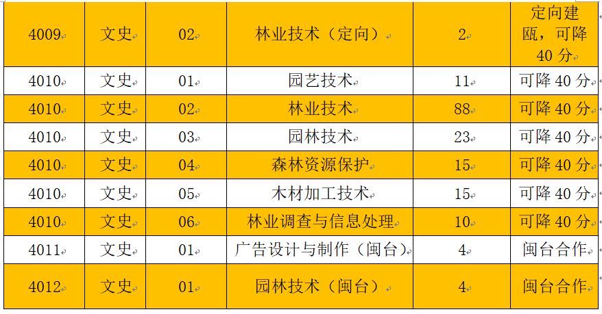 经过福建省教育考试院常规批次投档,我院2018年普通高考还有部分计划,其中可降分专业计划数435人(文史类164人,理工类271人)参加第1次征求志愿。林业技术、园林技术、园艺技术、木材加工技术、森林资源保护、林业调查与信息处理6个专业可降40分录取!
