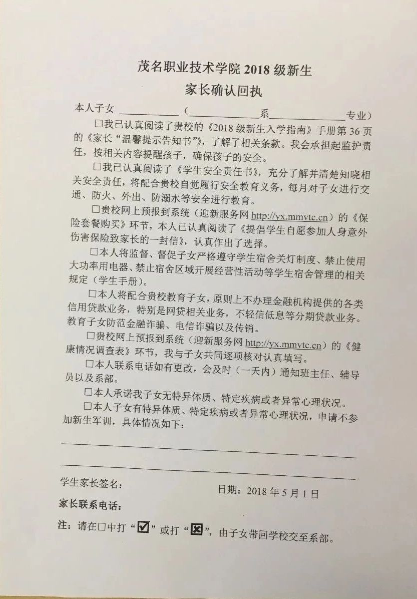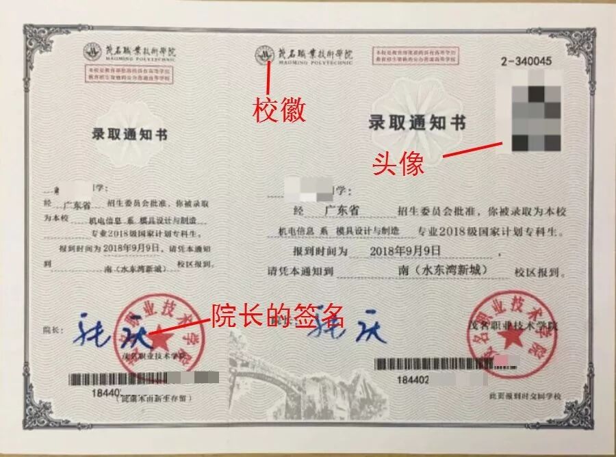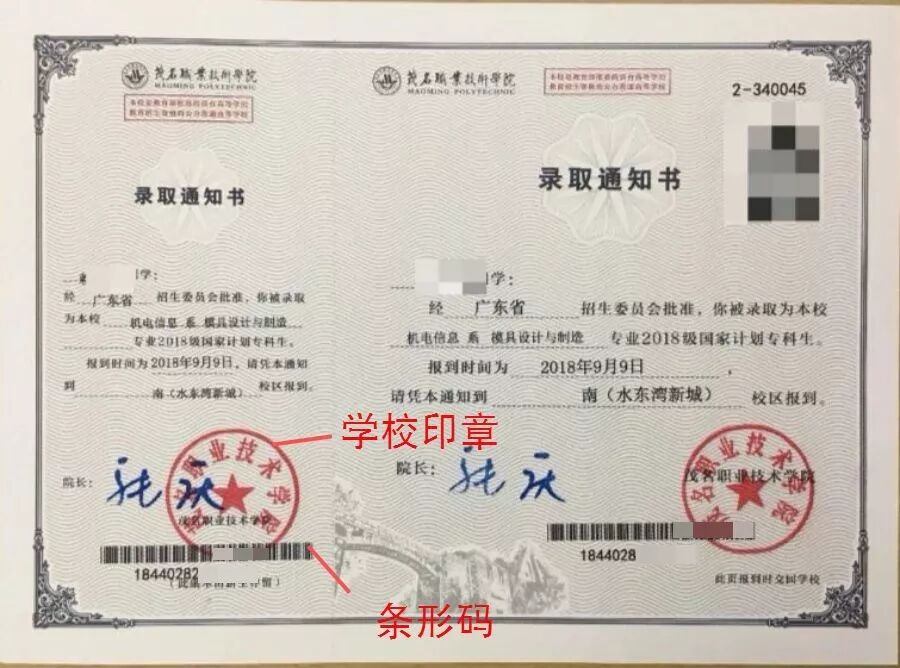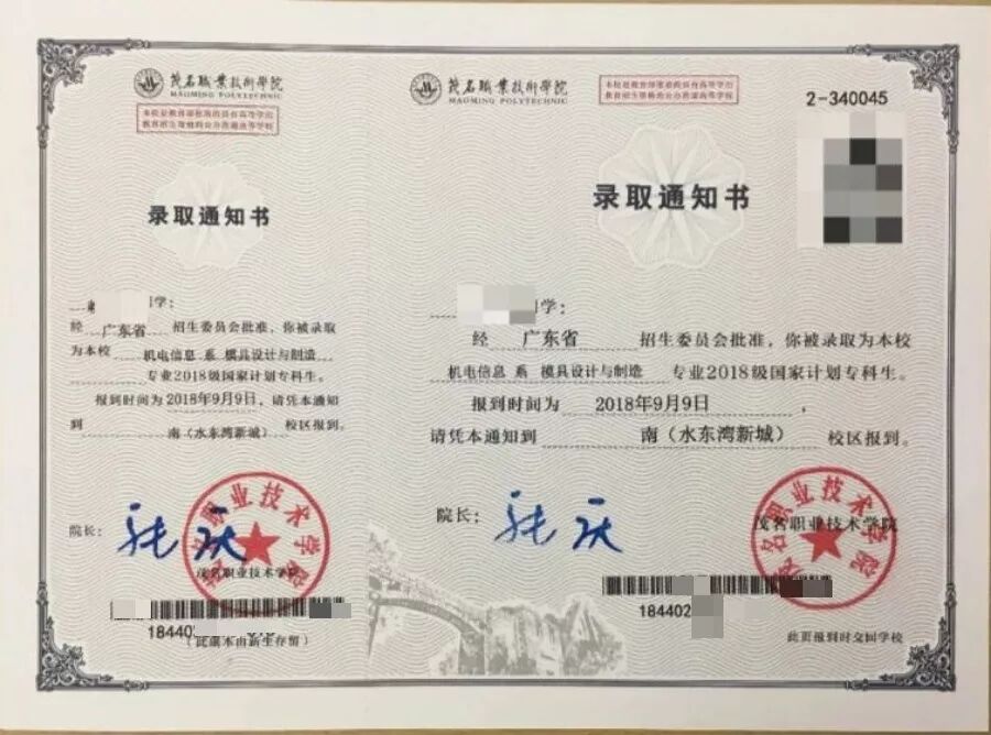登陆茂名职业技术学院招生信息网的录取系统就可以追踪快递的动态: http://websites.mmvtc.cn:808/zsw/admitsystem/ 点击登陆网站后,输入身份证号---姓名----验证码,就可以查询录取通知书的单号,然后百度即可查询快递物流。 2.收到通知书后,记得清点录取通知书的东西。 3.今年,我校的录取通知书的包裹里无银行卡。