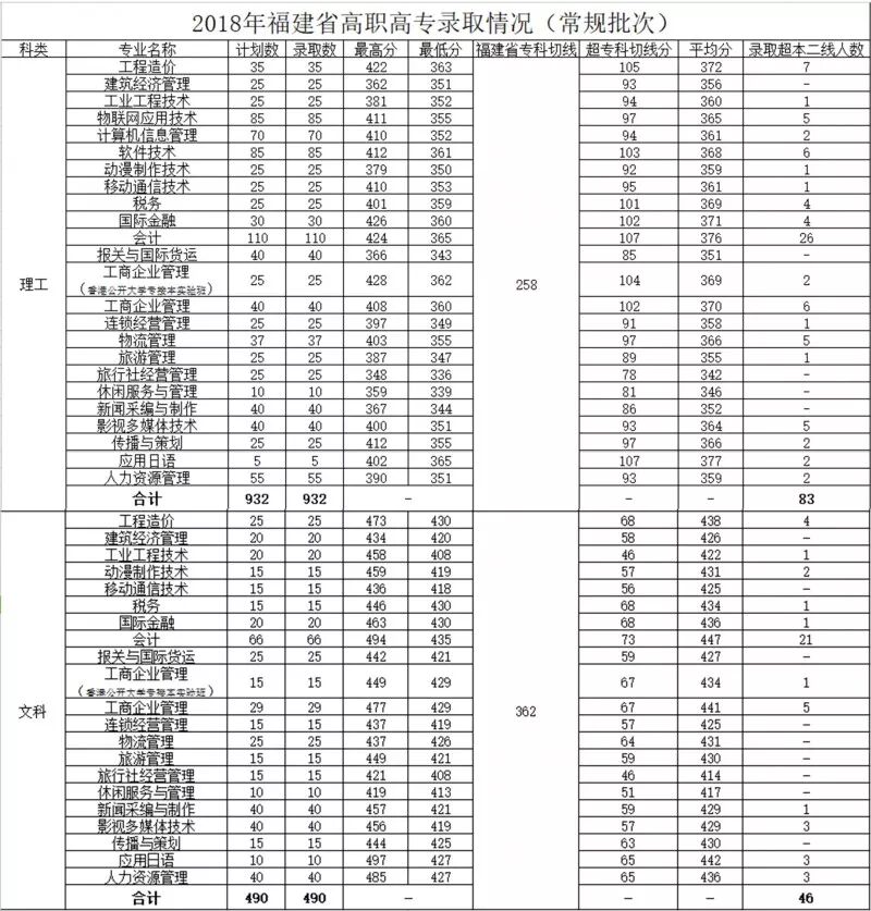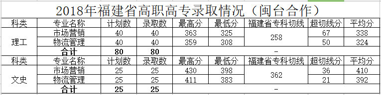 福建商学院于2018年8月11日,开始福建省高职(专科)各类别招生录取工作,截至今日除高职(专科)艺术类征求一人(阅档中发现考生体检不合格给予退档),其余类别均一次性圆满完成录取(其中常规批文史类录取超本二线学生46人,理工录取超本二线学生83人)。具体情况如下: