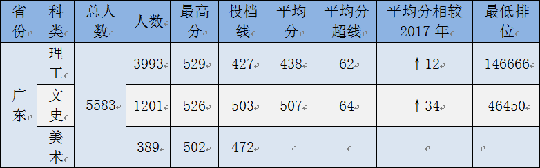 在粤成绩显著,较2017年录取平均分大幅提升,广东省文理录取平均分大幅度超过2017年。
