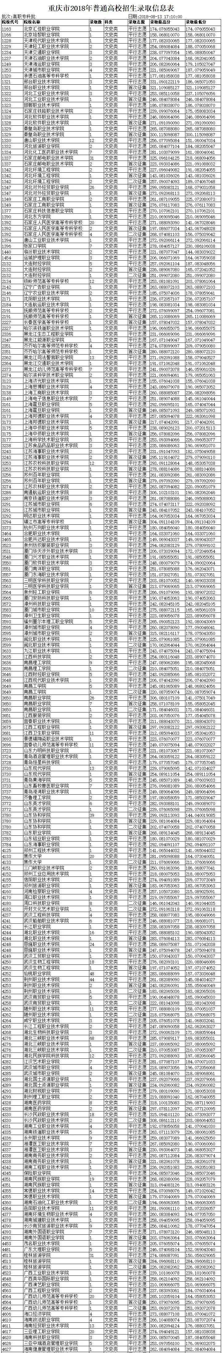 重庆市2018年普通高校招生录取信息表(高职专科批——文史类)