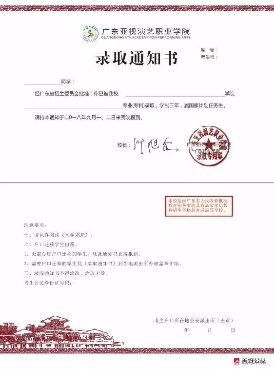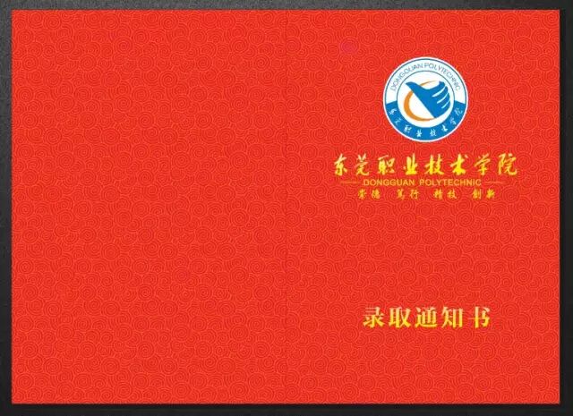 2018级东莞职业技术学校的录取通知书采用平展设计,延续往年使用的红黄鲜明色调,以示对新生的热烈欢迎。