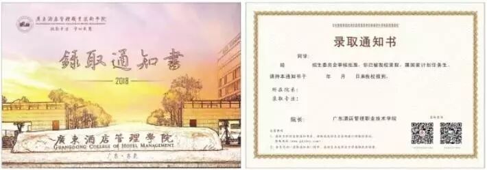 2018级广东酒店管理职业技术学院同样采用平展设计,校门风景手绘作为封面,简约新潮。