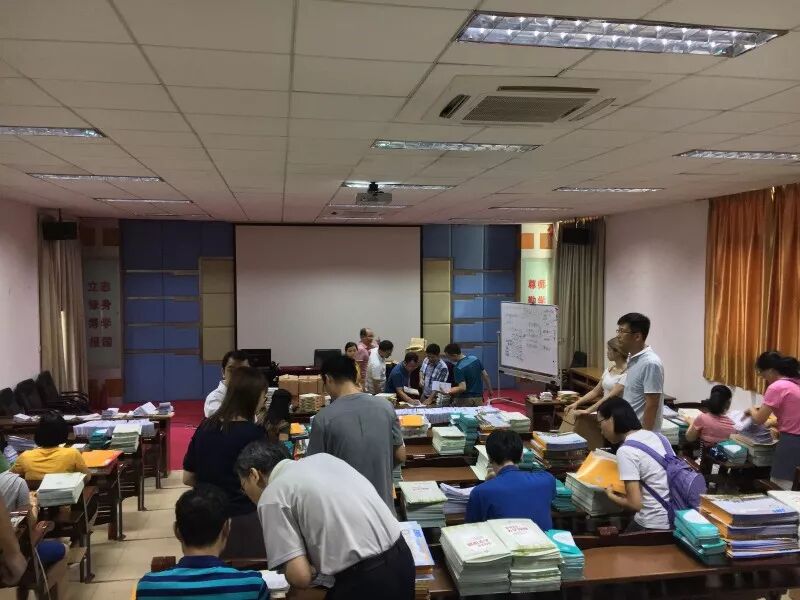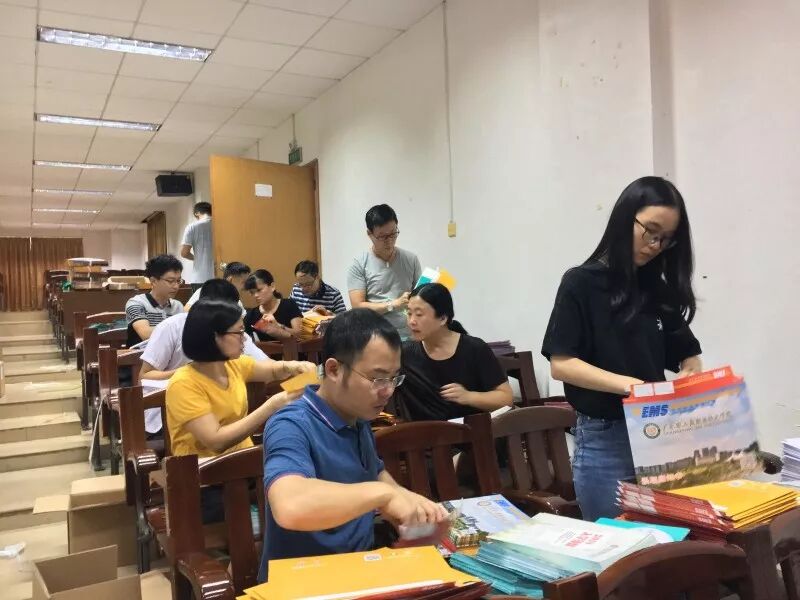 招就处老师和各二级学院老师们在现场封装录取通知书