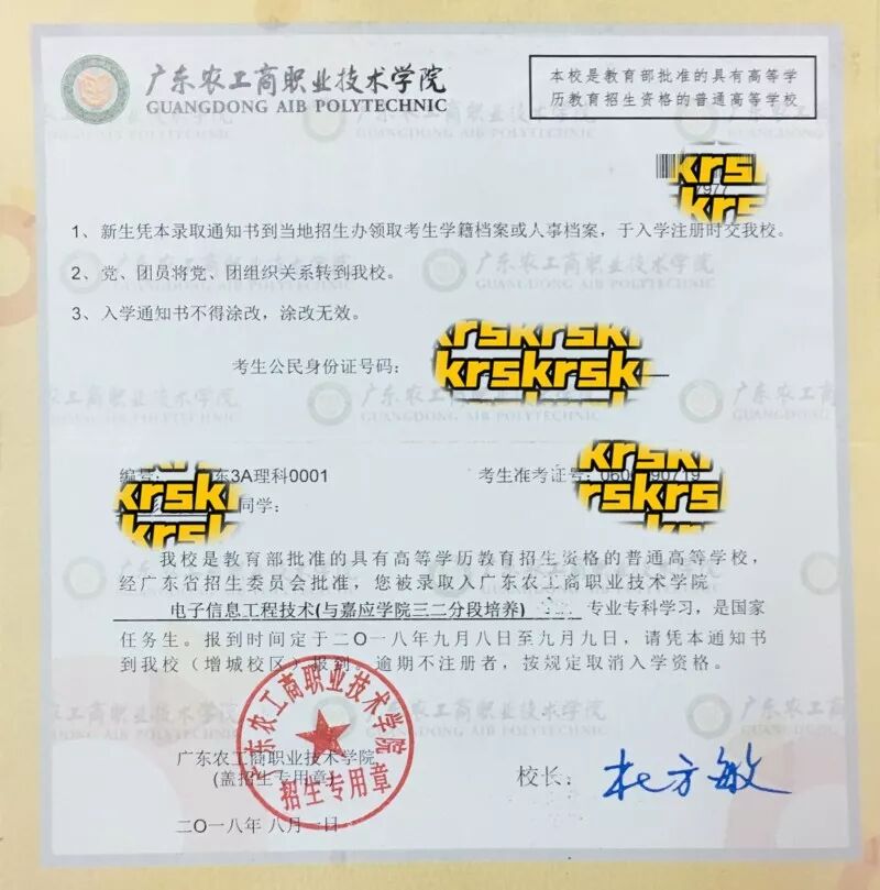 这是广东省内考生的录取通知书,省外考生录取还没有结束,录取结束后会第二批寄送!