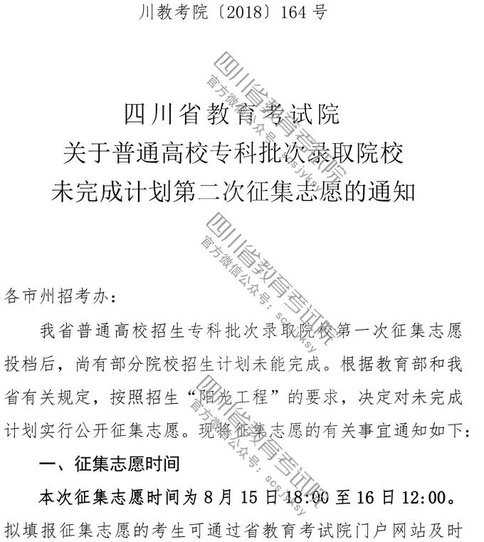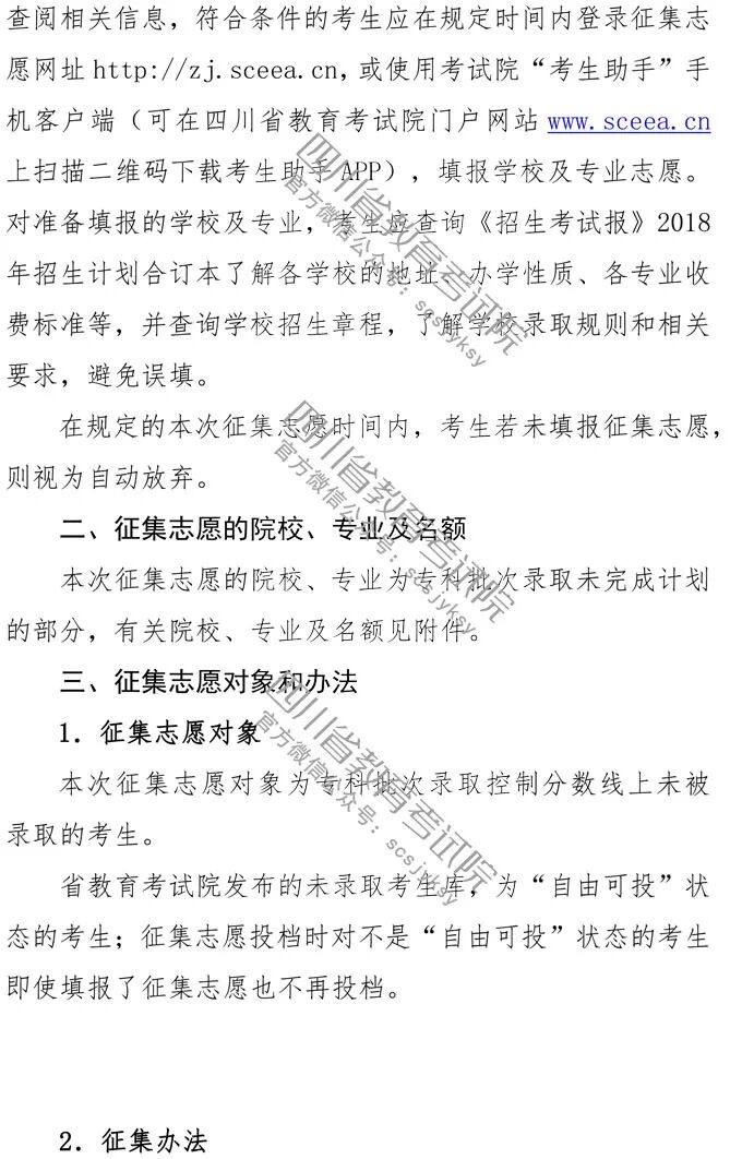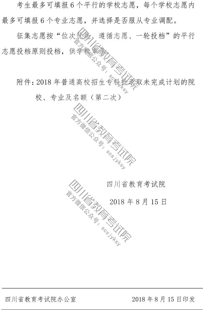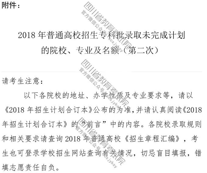 2018四川关于普通高校专科批次录取院校未完成计划第二次征集志愿的通知(文科)