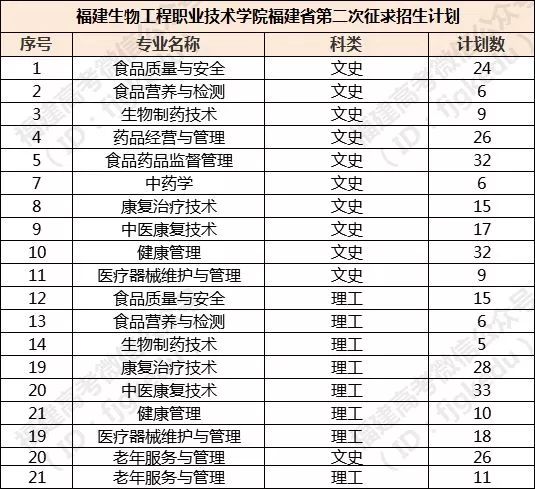 2018福建生物工程职业技术学院面向福建第二次征集志愿