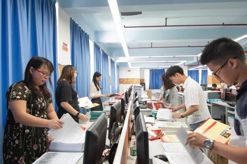 整齐叠放、等待填充的通知书封壳、依次放进各种入学材料、仔细核对投递信息、进行最后的检查、封装!每条流水线,根本停不下来!