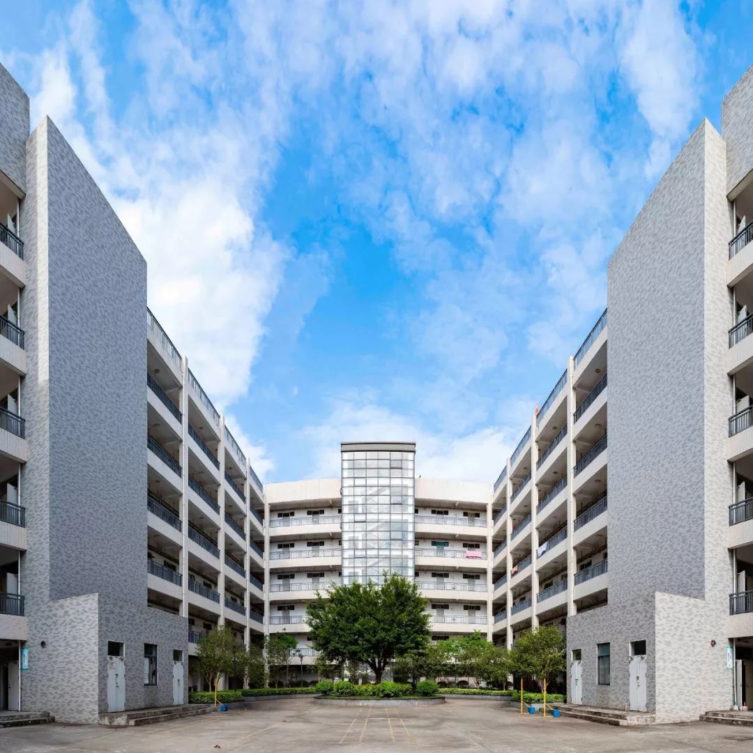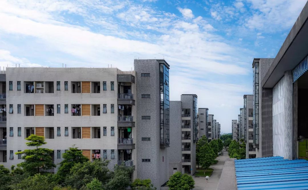 白云校区的宿舍楼外观呈C字型或E字型,每间宿舍都为四人间,上床下桌,独立卫浴,基本上都是二十四小时不断水不断电。