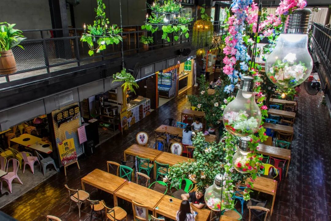 前门后门一整条街(荷光路),直通上社,可达科韵路,各种小吃都有。益禾堂、一点点、佰年云吞等店在后门右街。后门小巷子里也有许许多多的小饭店,炒菜的、烧烤的、麻辣烫的,应有尽有。