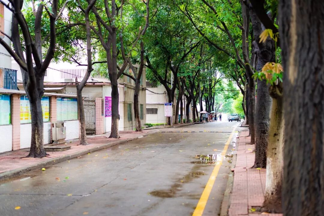 跑道上有人轻快漫步,树荫下有人默契交流,独坐看台也可享受田径场的美好时分。晚饭后还能在校道散散步,迎着傍晚清爽的微风,听着校道上周围居民谈论各家的家长里短的事,别有兴致。