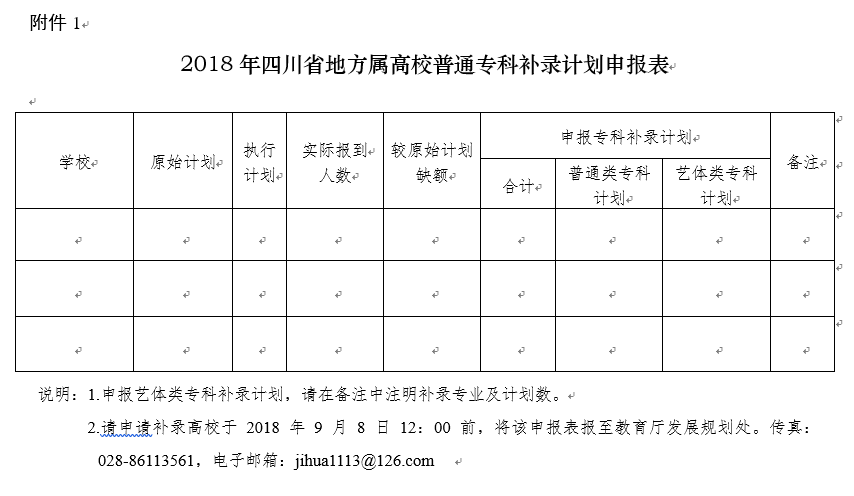 1.2018年四川省地方属高校普通专科补录计划申报表